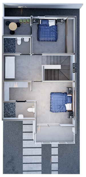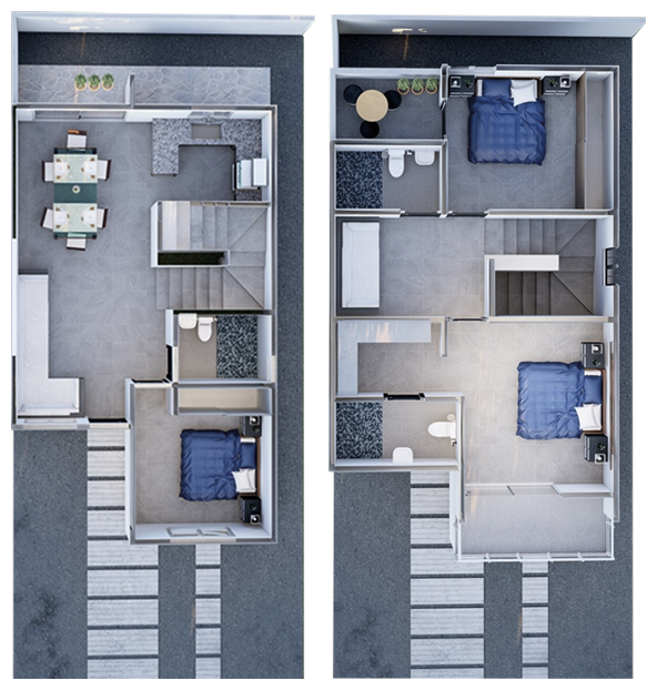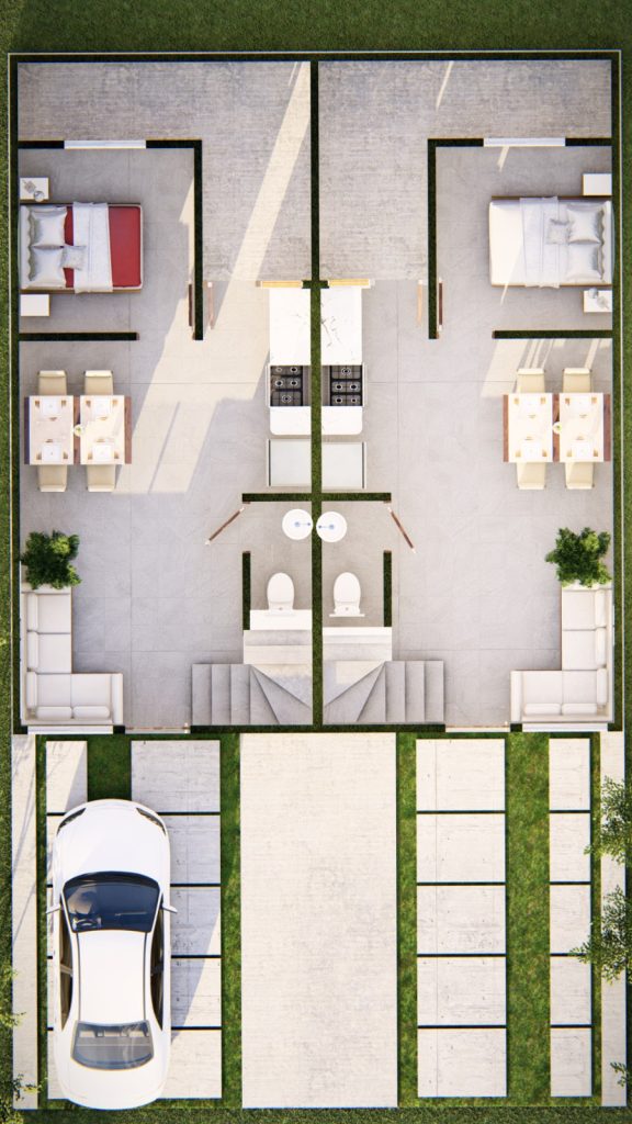 Esta propuesta te muestra una casa que se desarrolla en dos plantas y se destaca por su diseño limpio y elegante. Al entrar, te recibirá una espaciosa sala de estar que se conecta de manera armoniosa con el comedor, creando un ambiente acogedor y funcional para disfrutar de momentos en familia y con amigos.